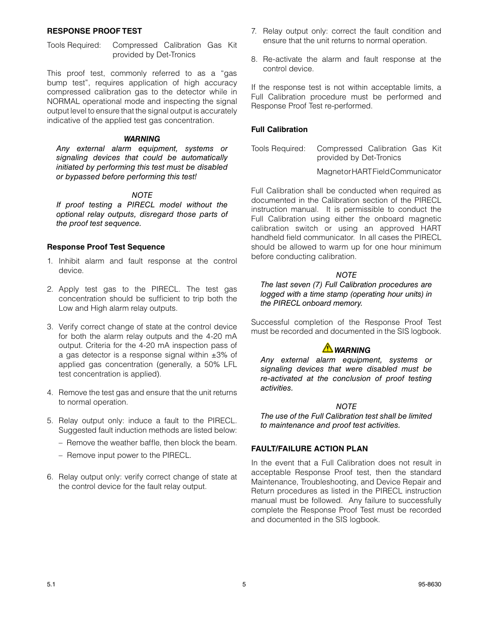 Det-Tronics Pirecl A1D1W2 Gas Detector - Model pirecl ir hydrocarbon gas detector and pirtb termination box are found to comply with the requirements in the following regulations/standards: