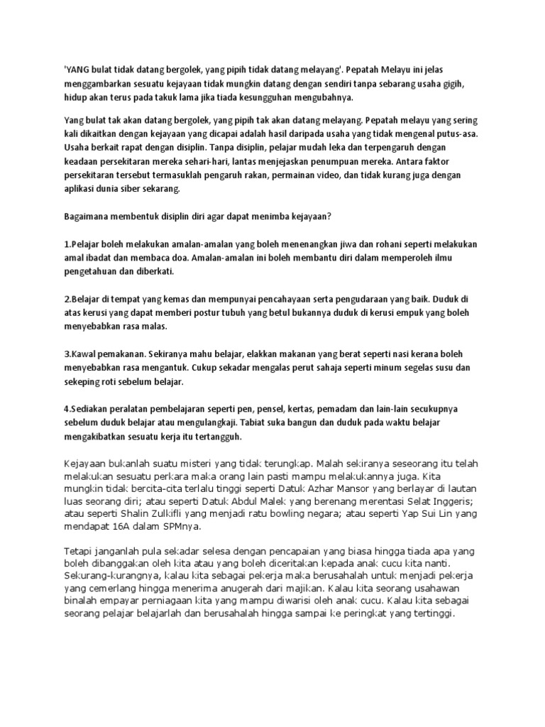 100 Karangan Contoh Pmr Dan Spm By Zaiton Zaba Issuu from image.isu.pub Yang bulat tidak datang bergolek , yang pipih tidak datang melayang. Yang bulat tak akan datang bergolek, yang pipih tak akan datang melayang… aku ingin berbicara pada terik mentari, tapi sayang, cuaca mendung diliputi awan. Berusaha dan bertawakkal allah swt sebaik2 perancang. Yang pipih takkan datang melayang yang bulat takkan datang bergolek! Tak ada benda datang bergolek. Semua peribahasa dengan kata bergolek, selalu ada di situs jagokata. Yang bulat tak datang bergolek, yang pipih tak datang melayang. Cantik sih.tapi beginilah momen paling memalukan supermodel saat fashion show yang terekam live.