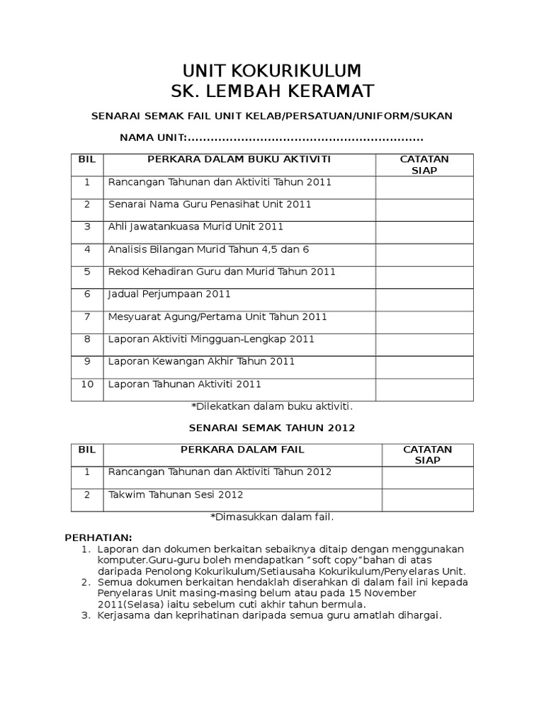 Senarai Semak Fail Kurikulum - Demikianlah artikel senarai semak lengkap fail kurikulum sekolah.. Terlibat dalam pelaksanaan aktiviti kurikulum, kokurikulum dan sukan dalam atau luar negara) spk bil 8/2012 (garis panduan pengurusan kewangan bantuan persekolahan ke sekolah. Kami telah sediakan senarai semak berpindah lengkap untuk kemudahan pindah rumah anda! Senarai semak dokumen penting dalam fail panitia 2020|apa itu fail pengurusan panitia? Minit mesyuarat terakhir dimasukkan ke dalam fail. 2015 senarai semak fail pengurusan kokurikulum mp3 & mp4.