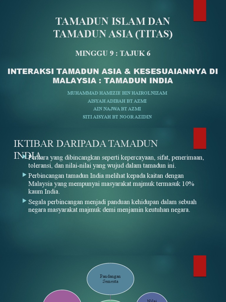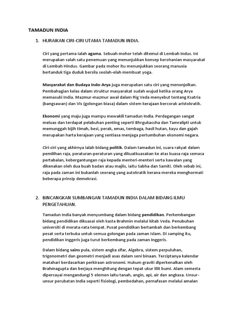 Agama islamhubungan tamadun islam dengan tamadun india sudah bermula lama melalui aktiviti perdagangan masyarakat arab mengenali india dengan nama sind/hind semenjak 1200 sm yang. Perbezaan tamadun india di malaysia dengan tamadun india yang dahulufull description. 100%100% found this document useful, mark this document as useful. Pencapaian dalam pelbagai bidang nama ahli kumpulan 1)mohammad. Tamadun islam dan tamadun asia sadn 1013 4.6 tamadun india :